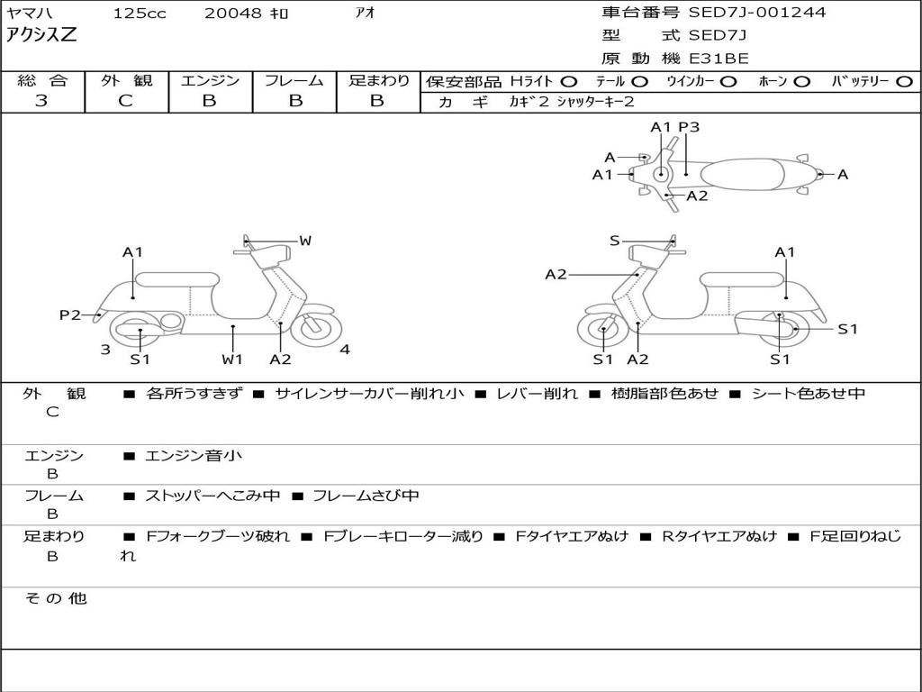 | Номер рамы / VIN | SED7J-001244 |