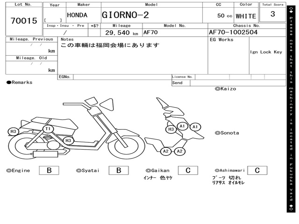 | Номер рамы / VIN | AF70-1002504 |