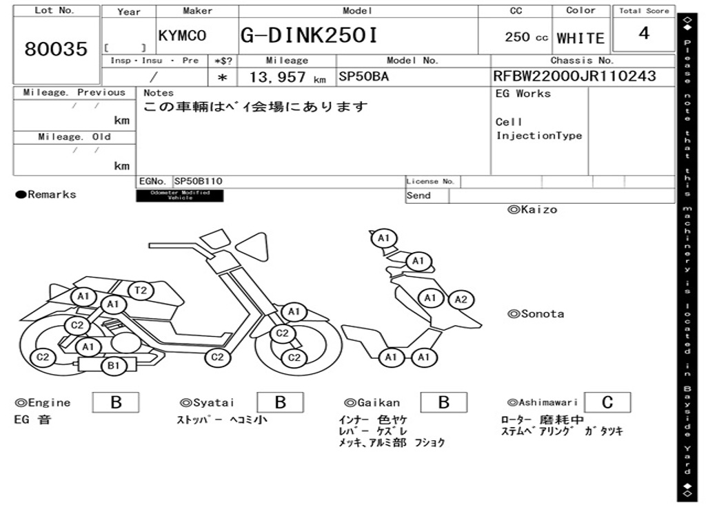 | Номер рамы / VIN | RFBW22000JR110243 |