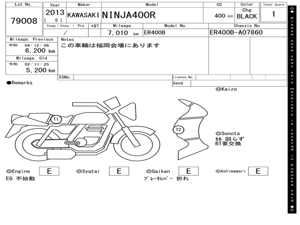 | Номер рамы / VIN | ER400B-A07860 |