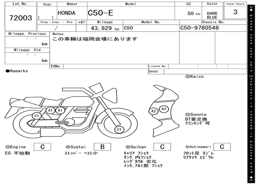 | Номер рамы / VIN | C50-9780548 |