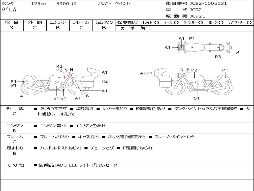 | Номер рамы / VIN | JC92-1005031 |