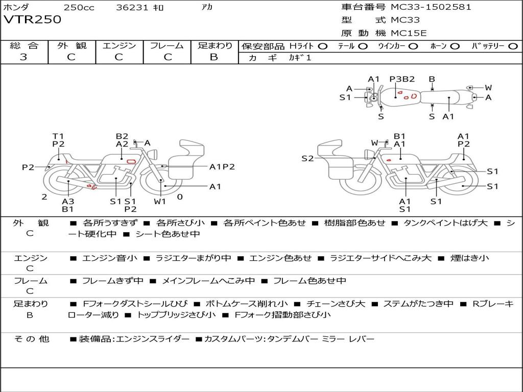 | Номер рамы / VIN | MC33-1502581 |