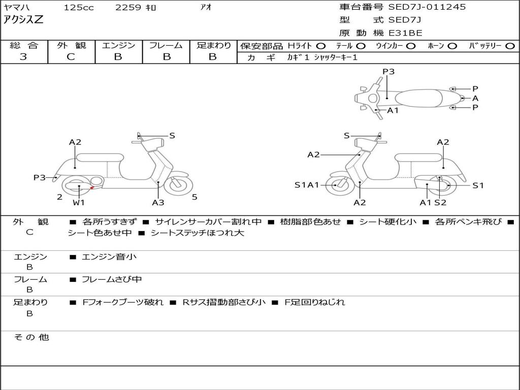 | Номер рамы / VIN | SED7J-011245 |