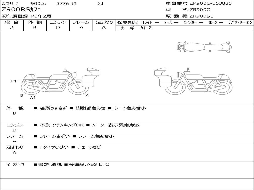 | Номер рамы / VIN | ZR900C-053885 |