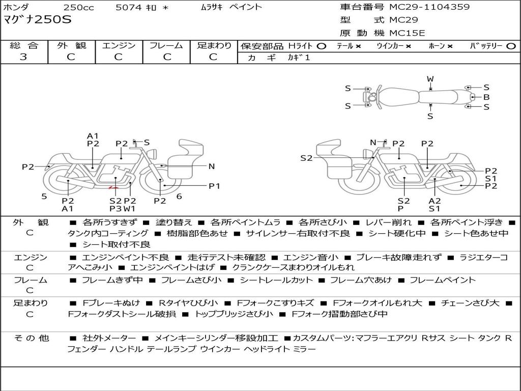 | Номер рамы / VIN | MC29-1104359 |