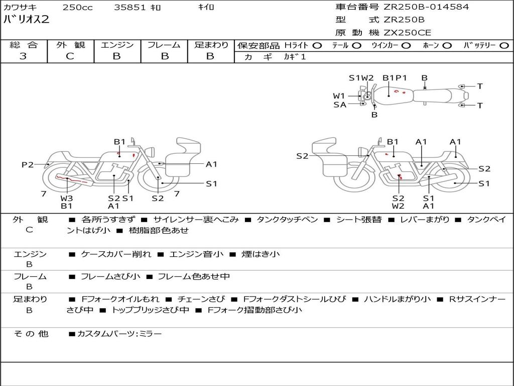 | Номер рамы / VIN | ZR250B-014584 |
