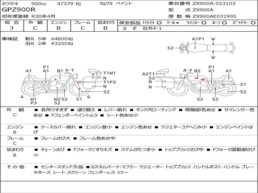 | Номер рамы / VIN | ZX900A-023103 |