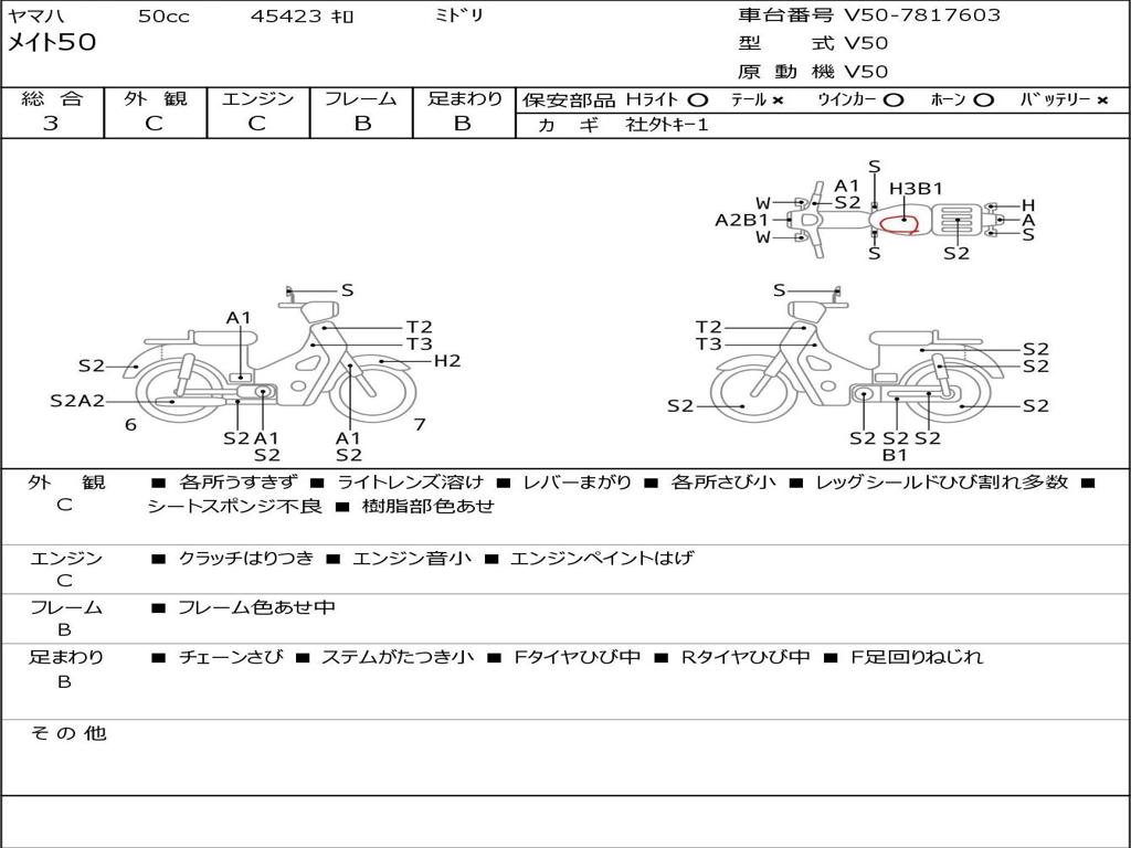 | Номер рамы / VIN | V50-7817603 |