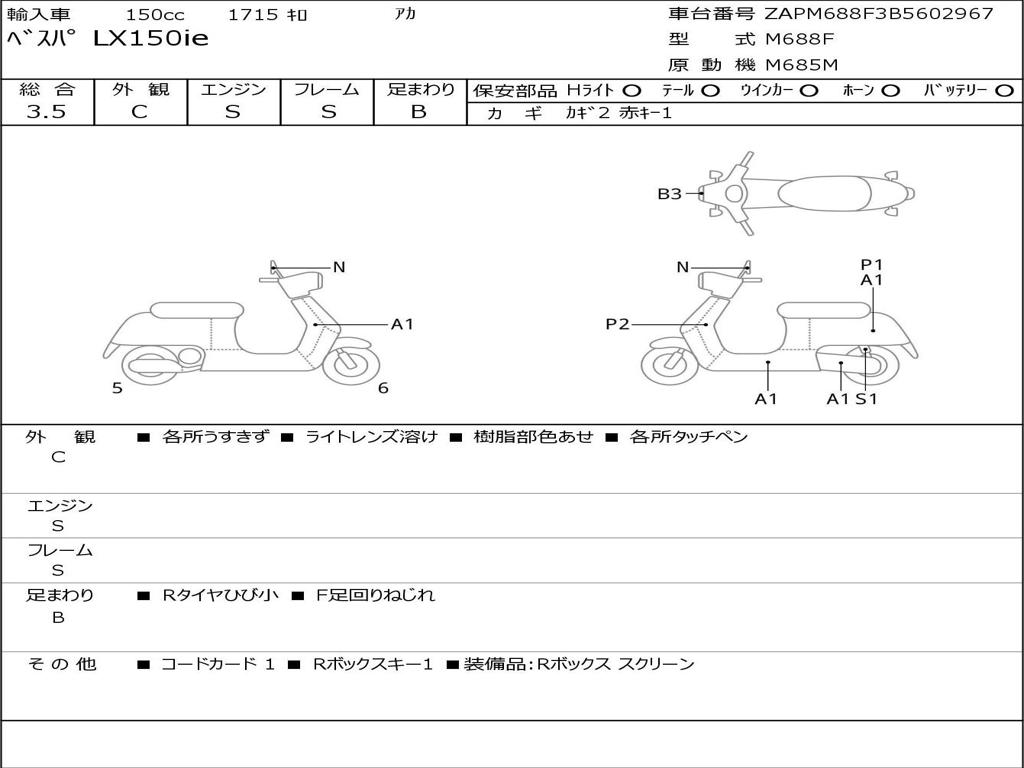 | Номер рамы / VIN | ZAPM688F3B5602967 |