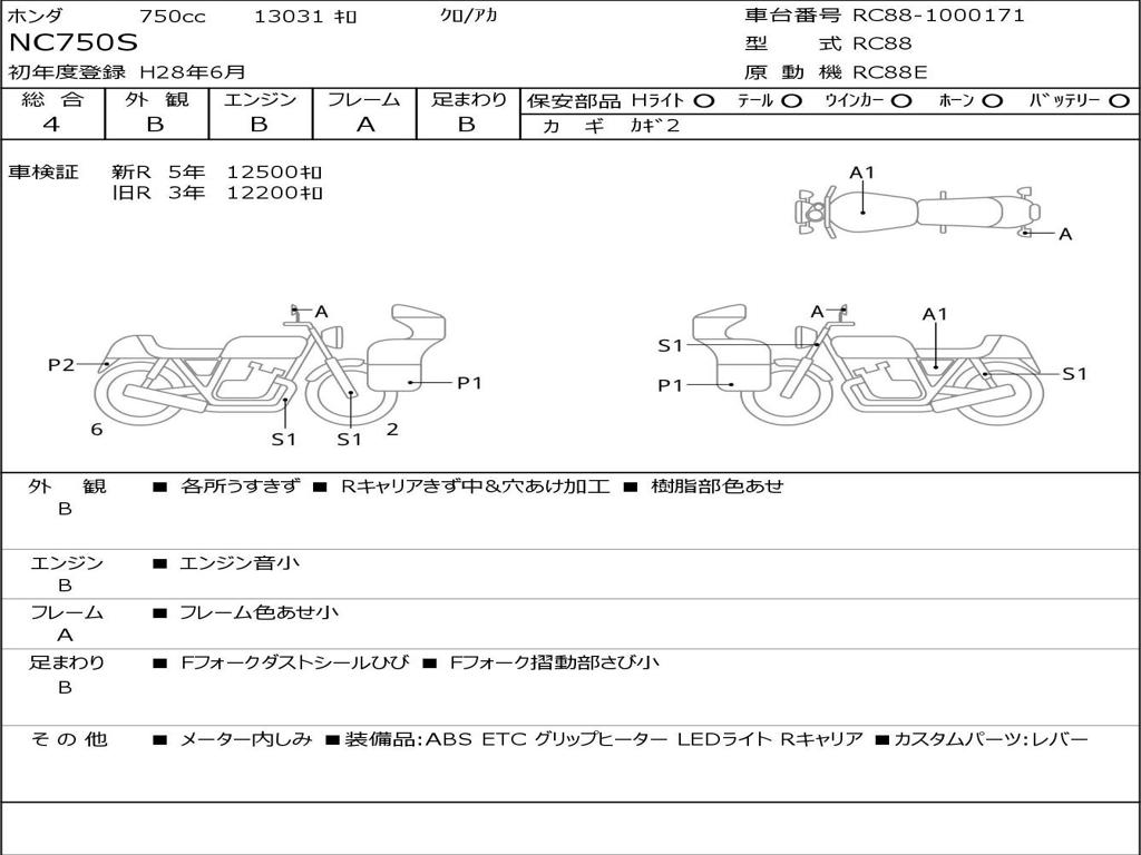 | Номер рамы / VIN | RC88-1000171 |