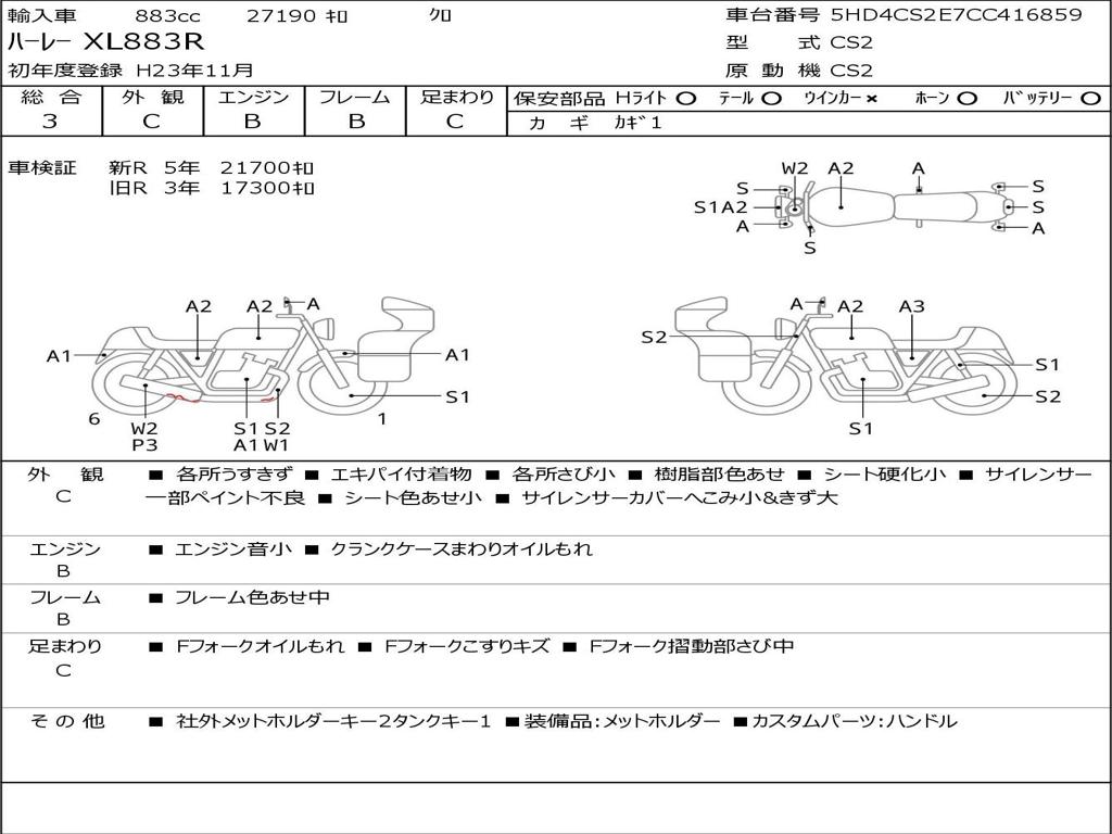 | Номер рамы / VIN | 5HD4CS2E7CC416859 |