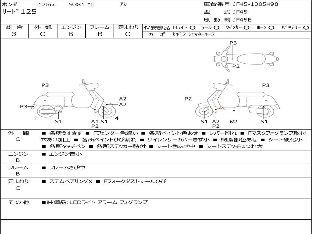 | Номер рамы / VIN | JF45-1305498 |