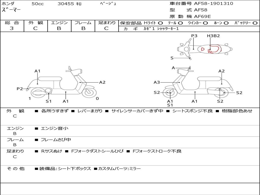 | Номер рамы / VIN | AF58-1901310 |