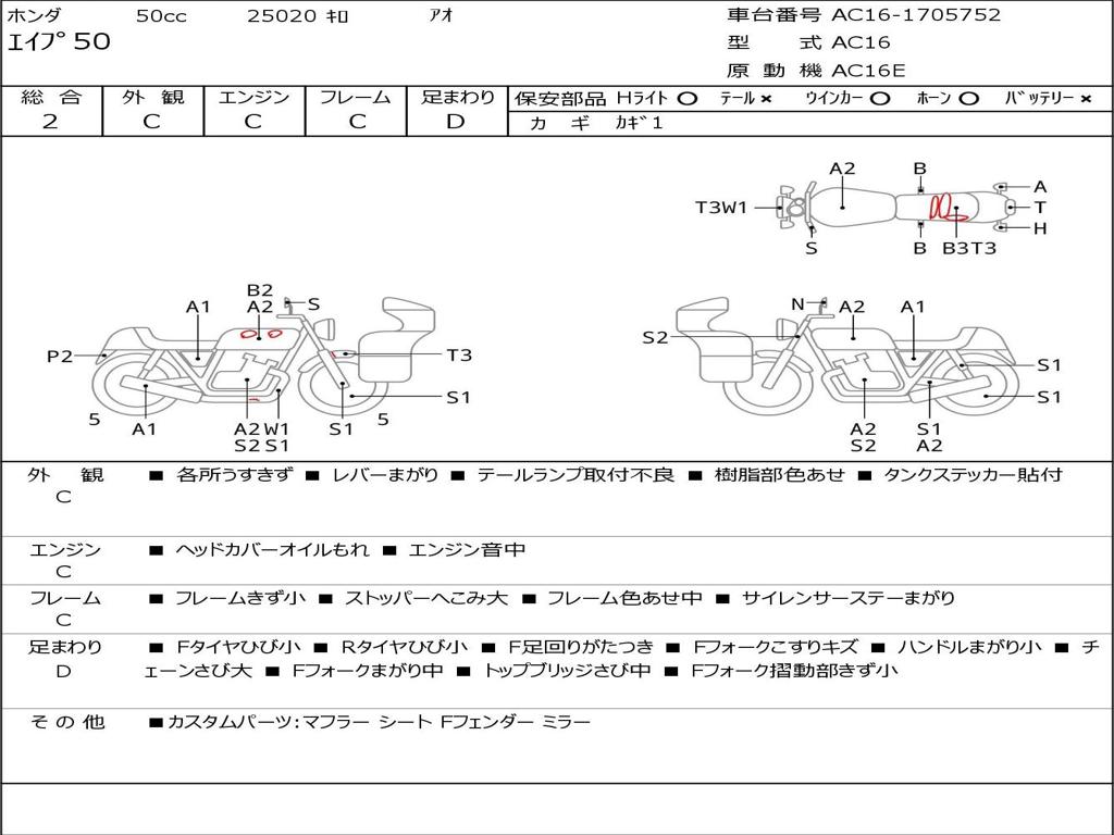 | Номер рамы / VIN | AC16-1705752 |