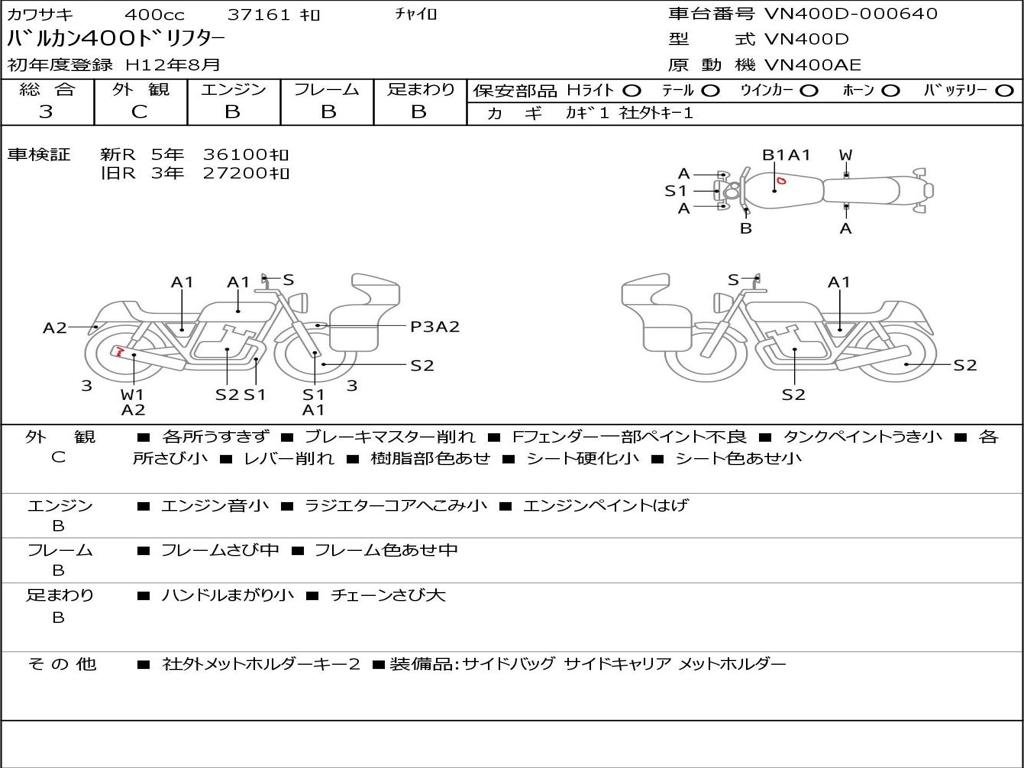 | Номер рамы / VIN | VN400D-000640 |