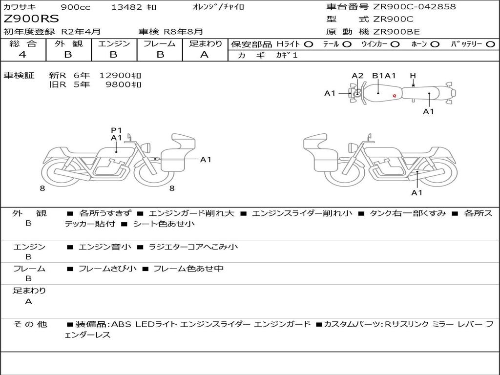 | Номер рамы / VIN | ZR900C-042858 |