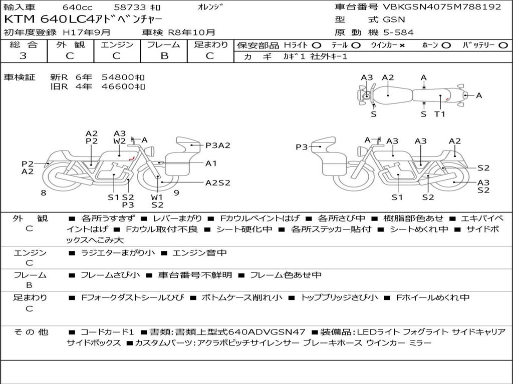 | Номер рамы / VIN | VBKGSN4075M788192 |
