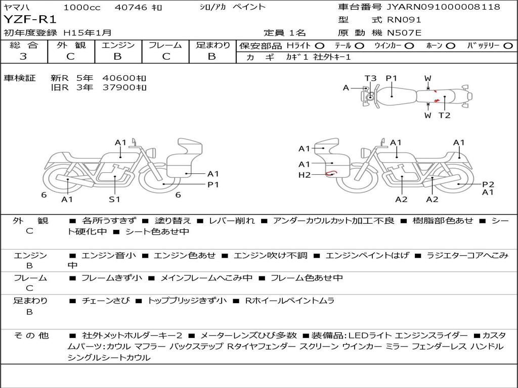 | Номер рамы / VIN | JYARN091000008118 |