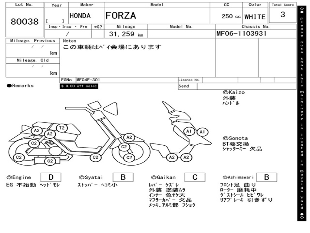 | Аукцион | ARAI BAYSIDE |