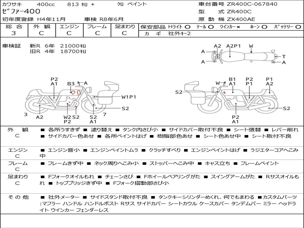 | Номер рамы / VIN | ZR400C-067840 |