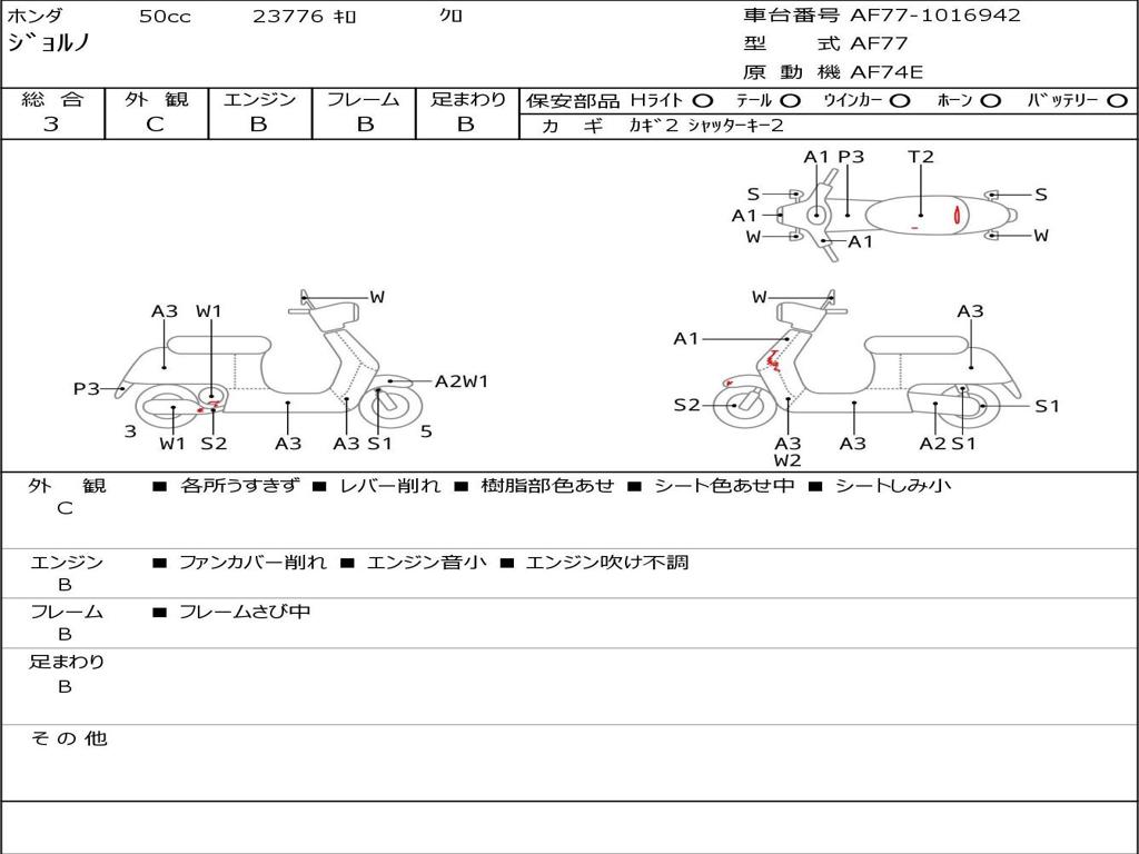 | Номер рамы / VIN | AF77-1016942 |