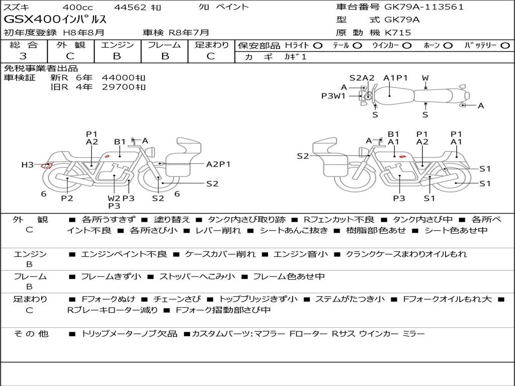 | Номер рамы / VIN | GK79A-113561 |