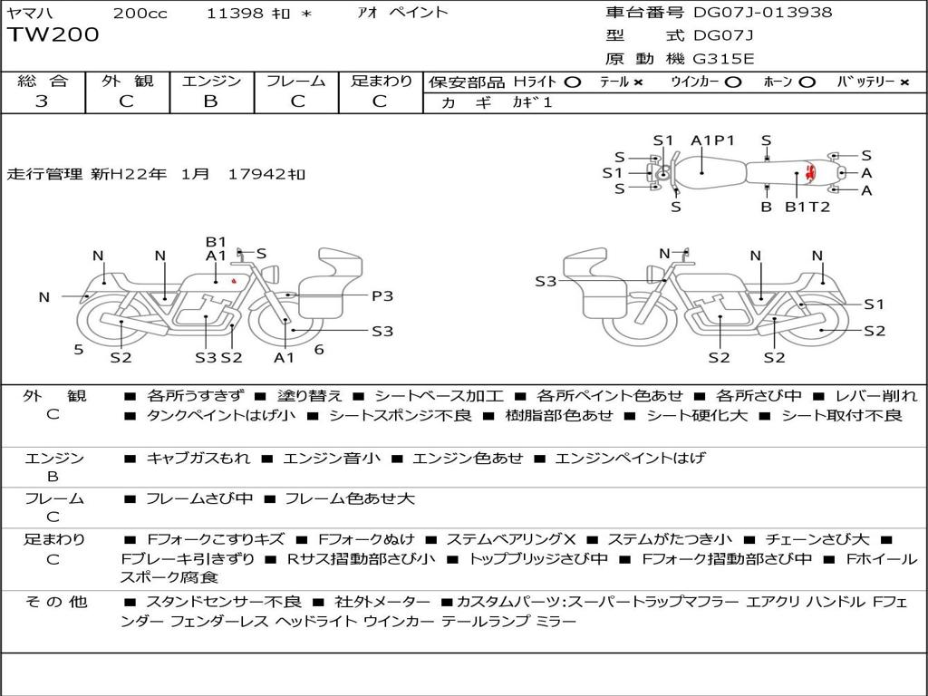 | Номер рамы / VIN | DG07J-013938 |