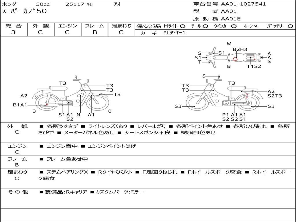 | Номер рамы / VIN | AA01-1027541 |
