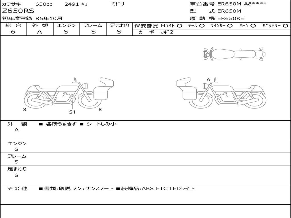 | Номер рамы / VIN | ER650M-A87995 |