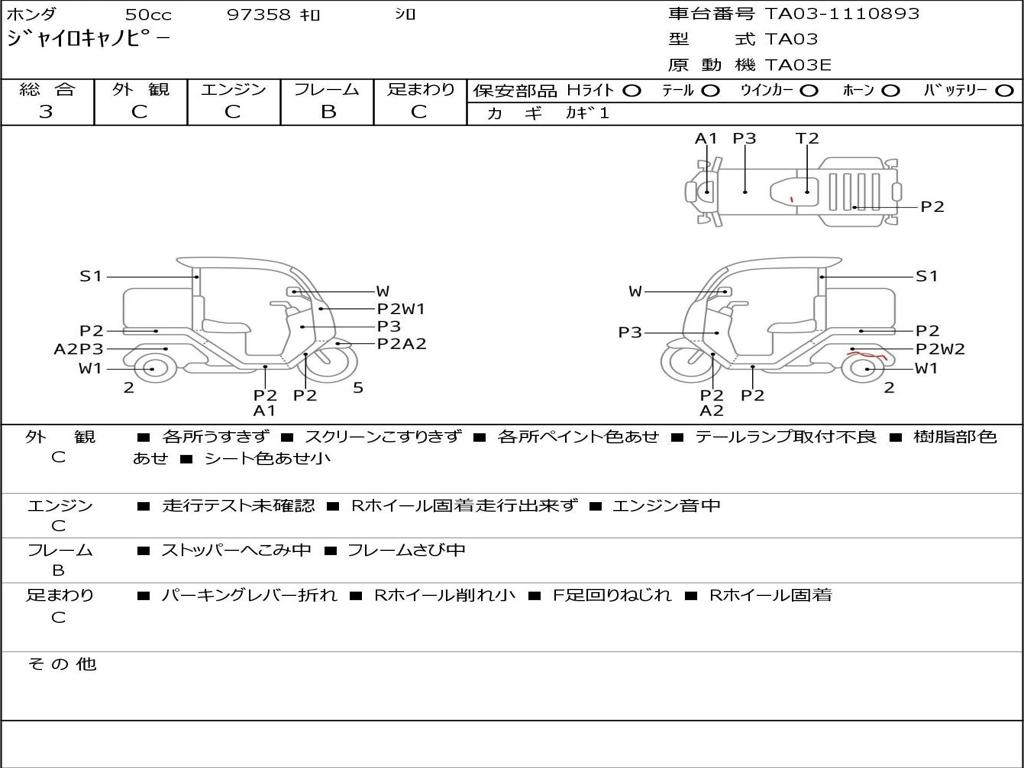 | Номер рамы / VIN | TA03-1110893 |