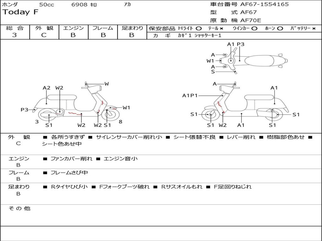 | Номер рамы / VIN | AF67-1554165 |
