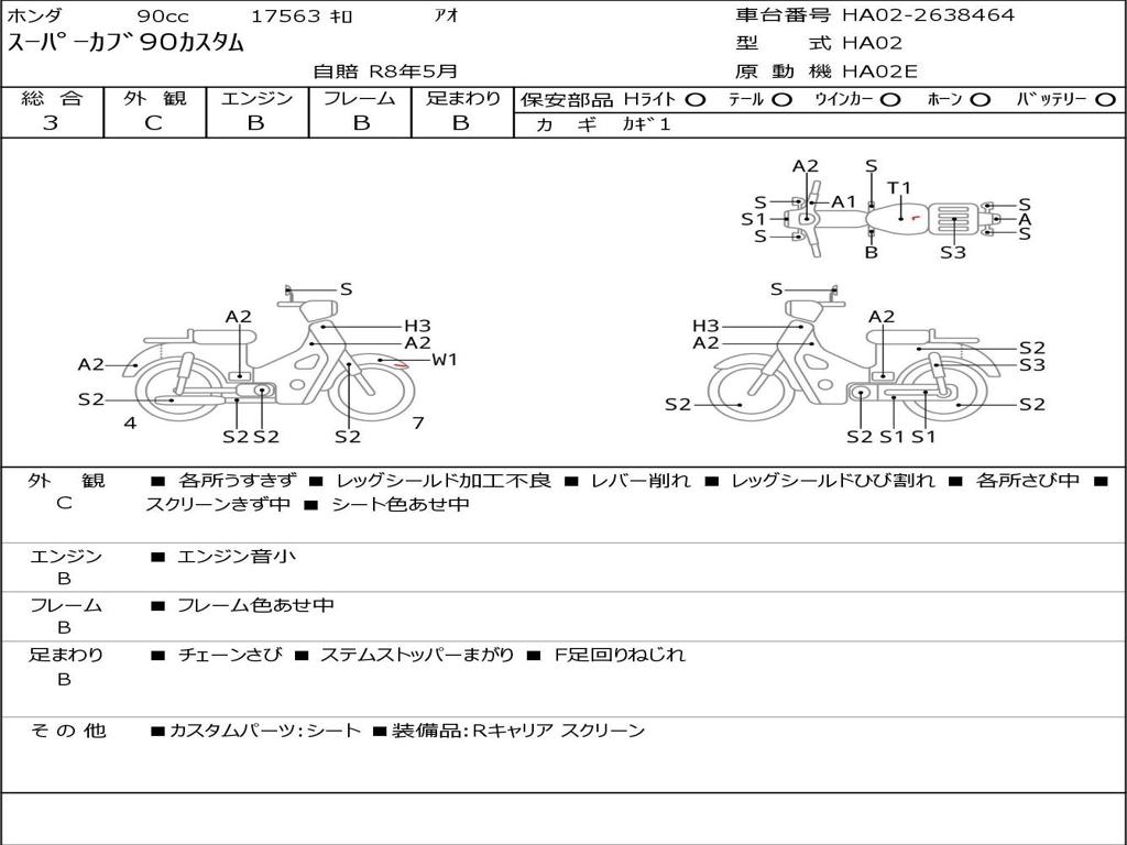 | Номер рамы / VIN | HA02-2638464 |
