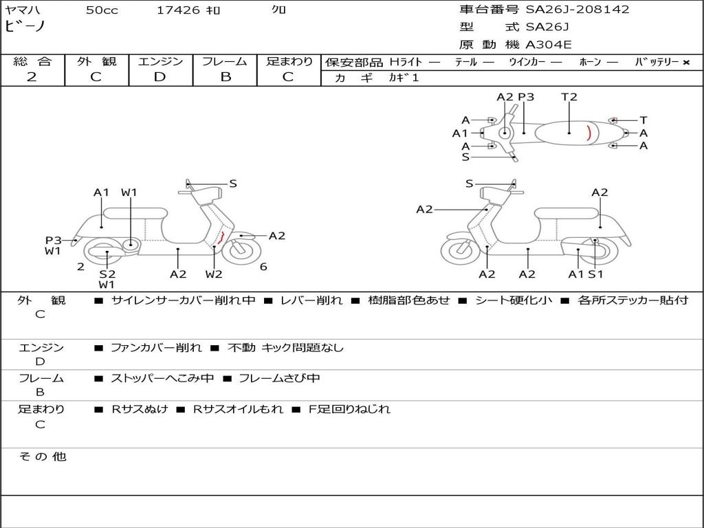 | Номер рамы / VIN | SA26J-208142 |