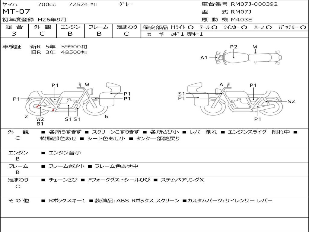| Номер рамы / VIN | RM07J-000392 |