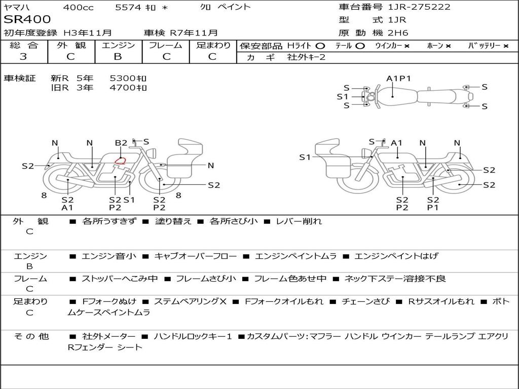 | Номер рамы / VIN | 1JR-275222 |