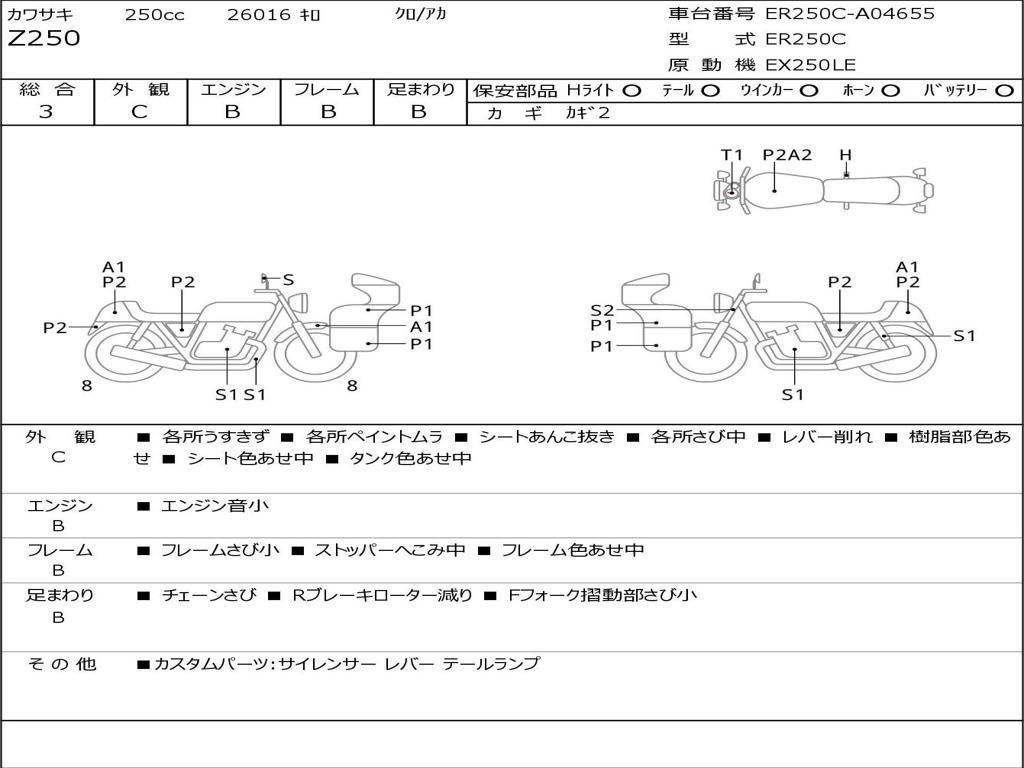 | Номер рамы / VIN | ER250C-A04655 |