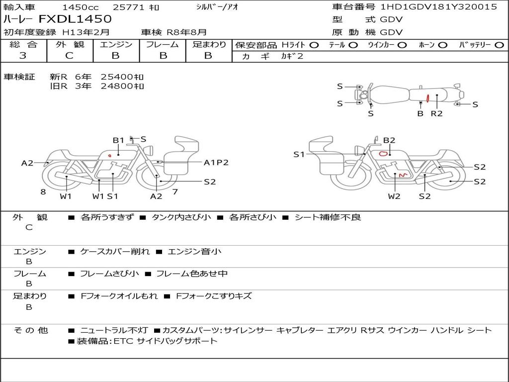 | Номер рамы / VIN | 1HD1GDV181Y320015 |