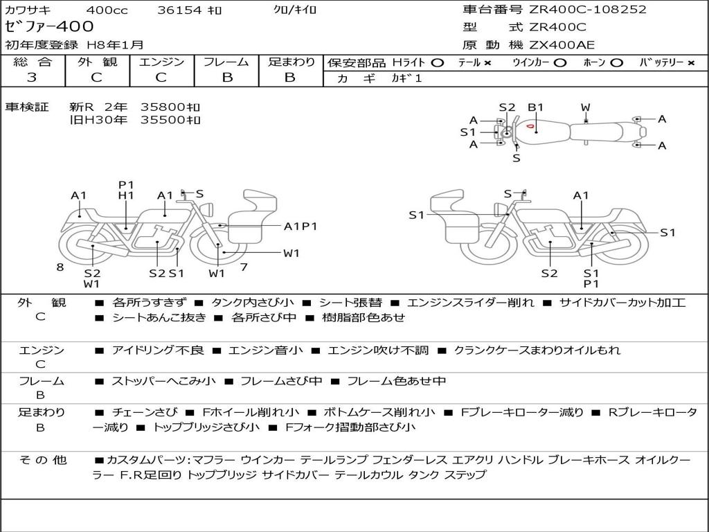 | Номер рамы / VIN | ZR400C-108252 |