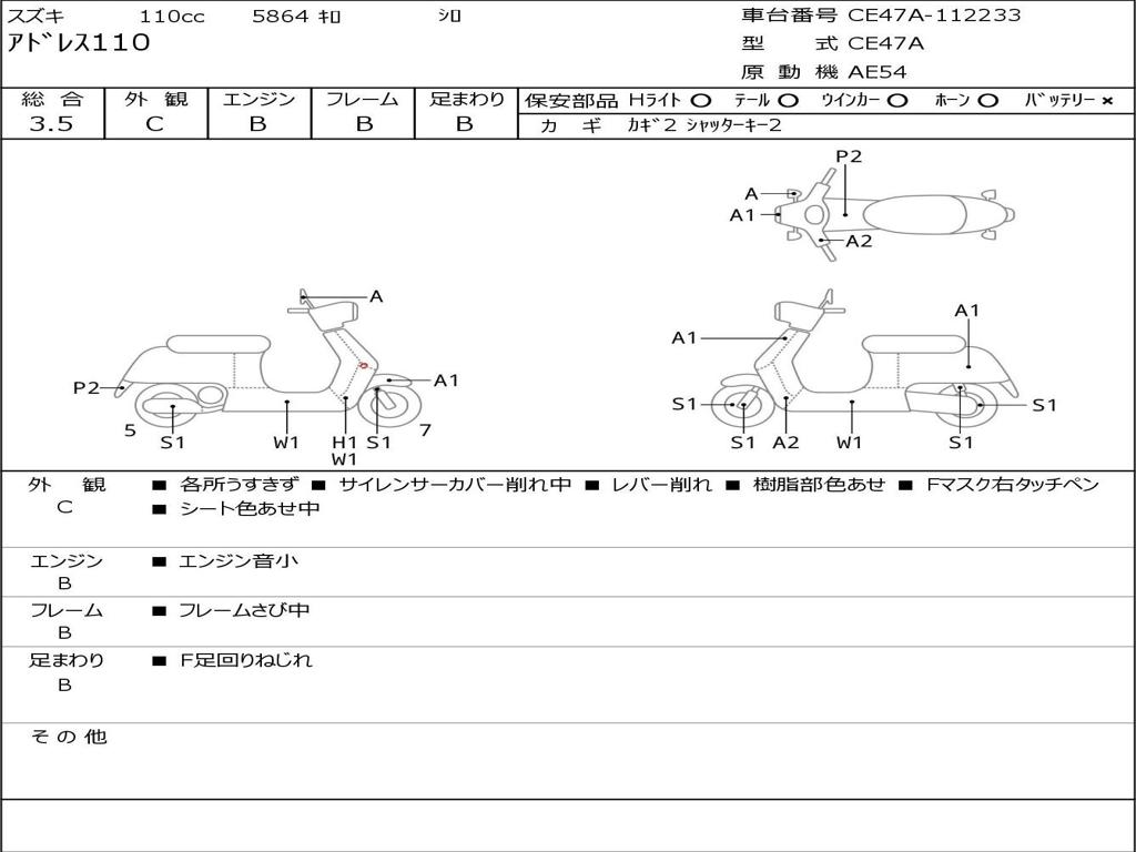| Номер рамы / VIN | CE47A-112233 |