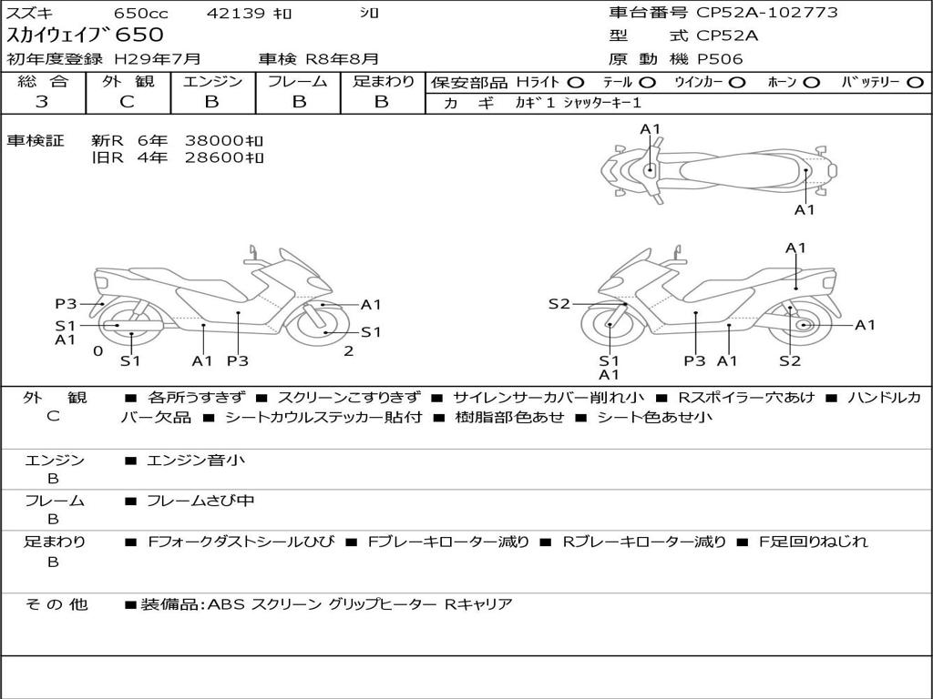 | Номер рамы / VIN | CP52A-102773 |