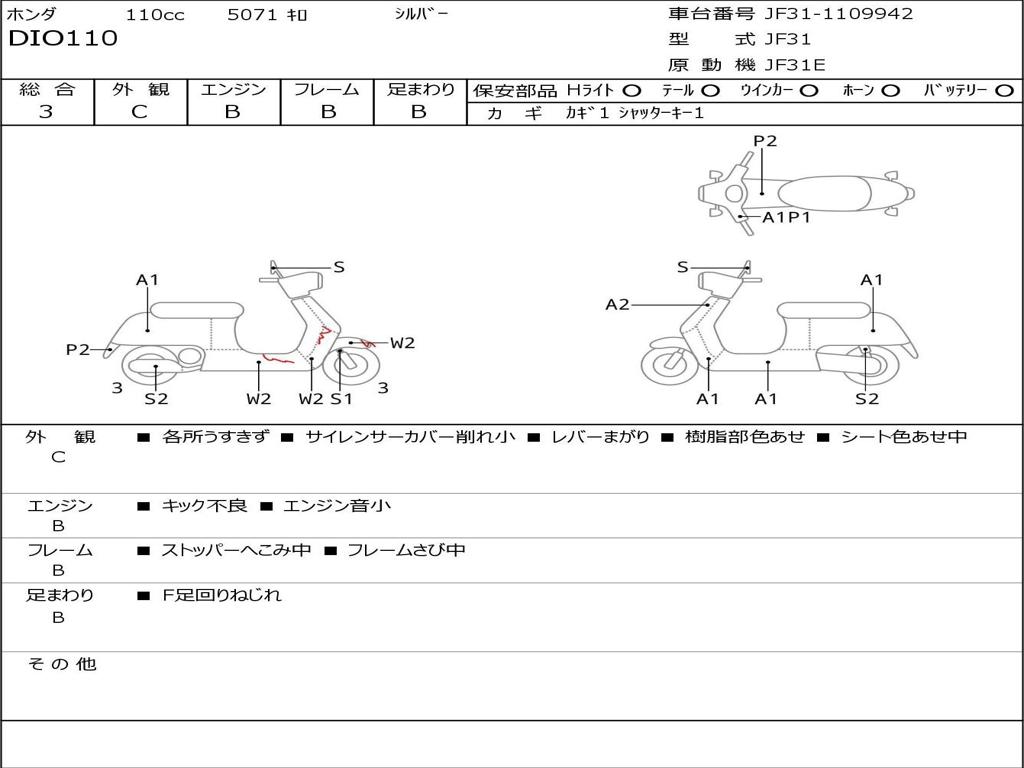 | Номер рамы / VIN | JF31-1109942 |