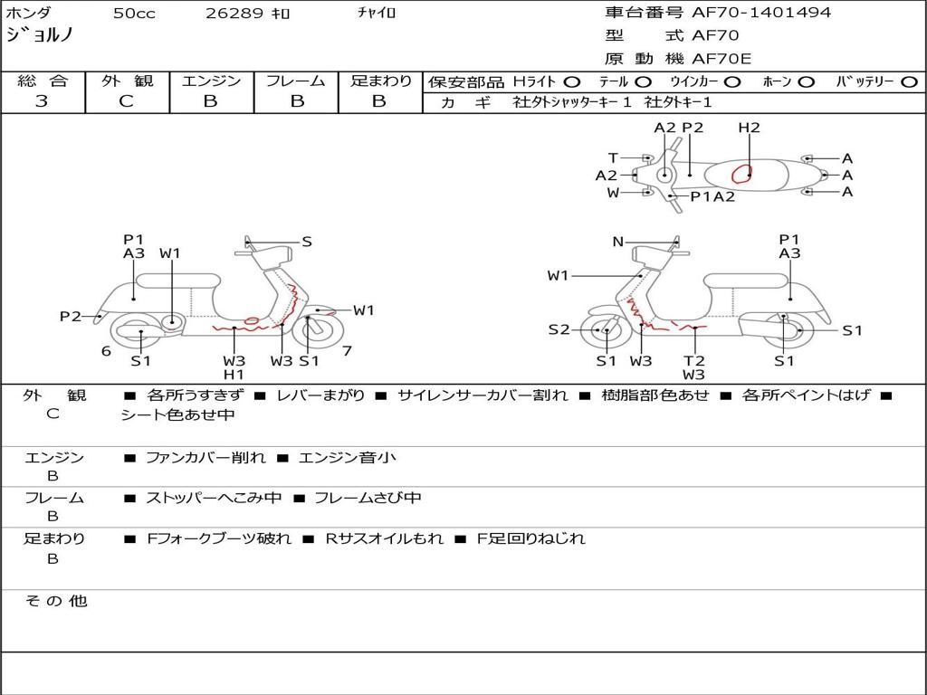 | Номер рамы / VIN | AF70-1401494 |