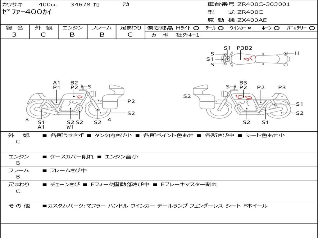 | Номер рамы / VIN | ZR400C-303001 |