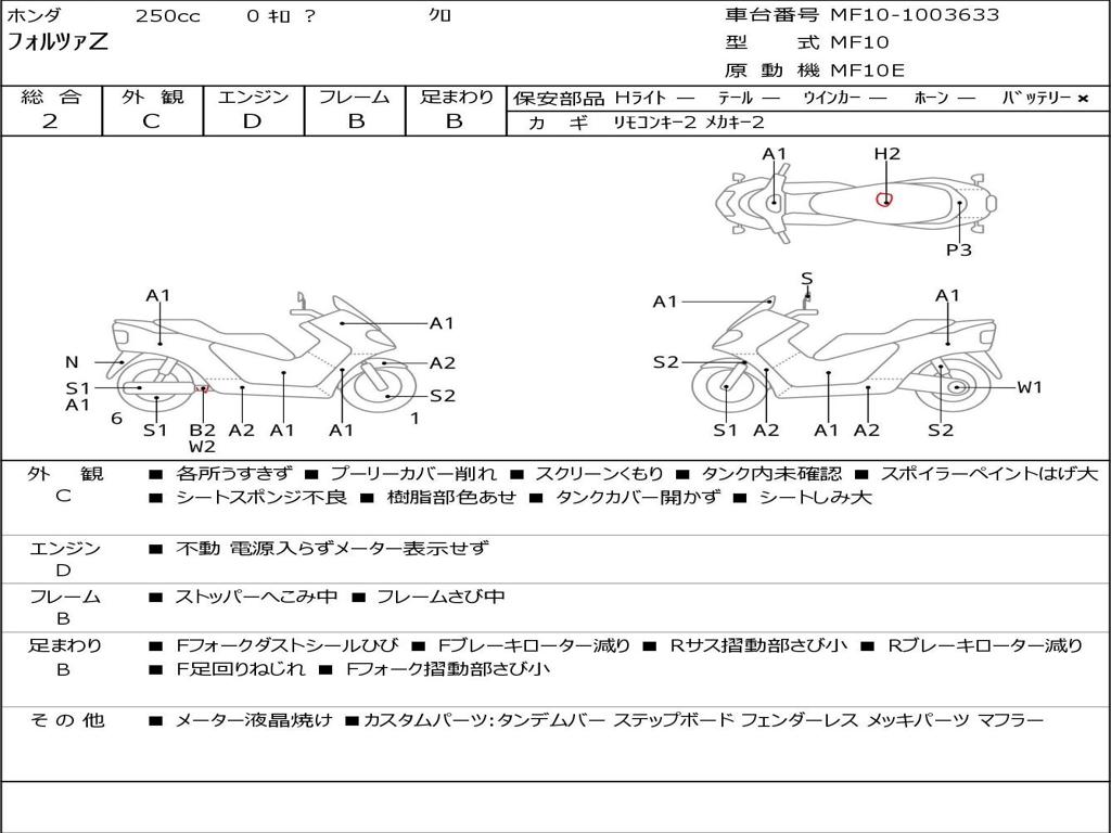 | Номер рамы / VIN | MF10-1003633 |