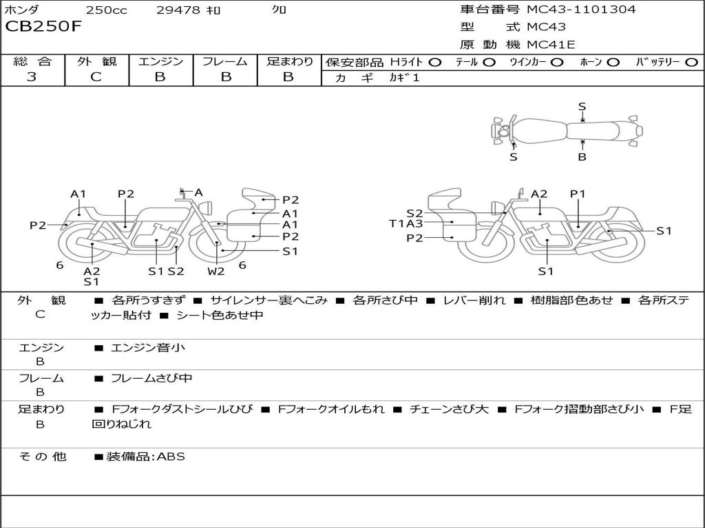 | Номер рамы / VIN | MC43-1101304 |