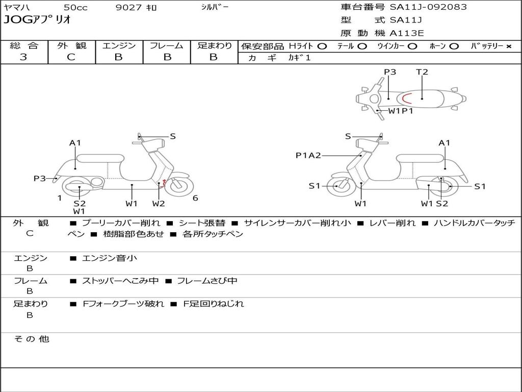 | Номер рамы / VIN | SA11J-092083 |