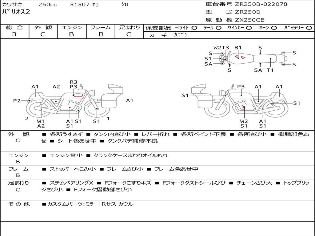 Номер рамы / VIN | ZR250B-022078 |