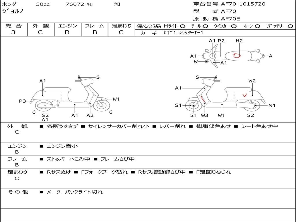 | Номер рамы / VIN | AF70-1015720 |