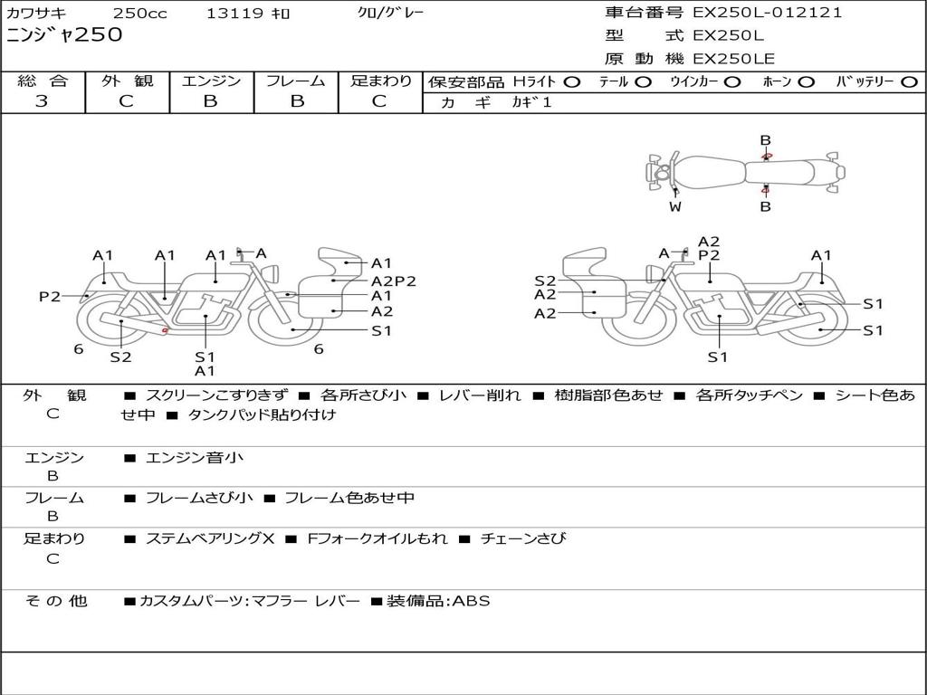 Номер рамы / VIN | EX250L-012121 |